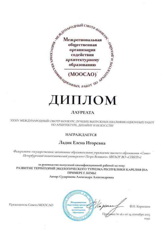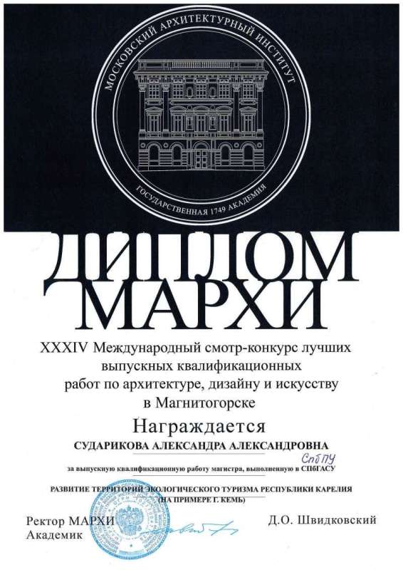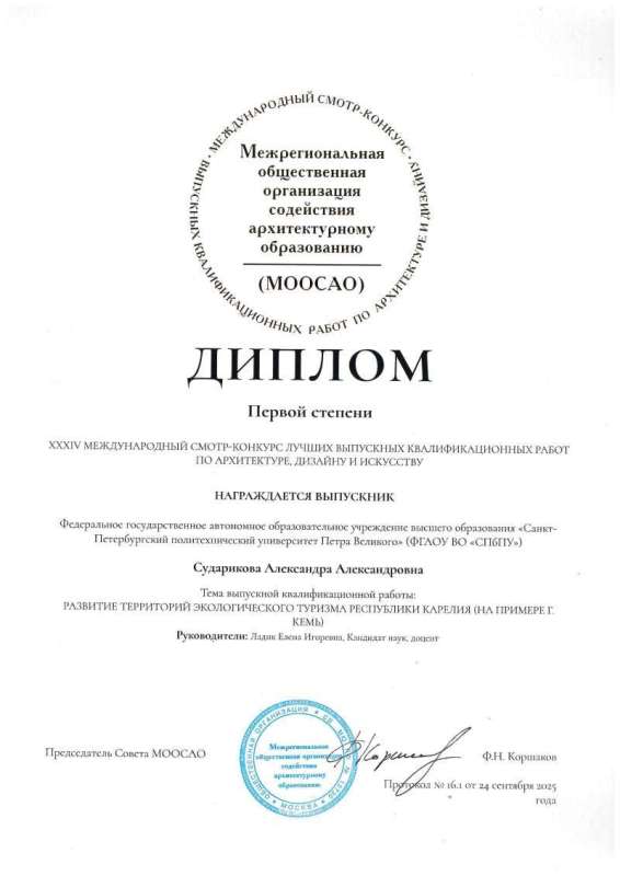 Тема дипломной работы:"Развитие территорий экологического туризма на примере Республики Карелии (на примере г.Кемь)". Руководитель - канд.арх., доцент ВШДиА ИСИ Елена Игоревна Ладик..jpg)