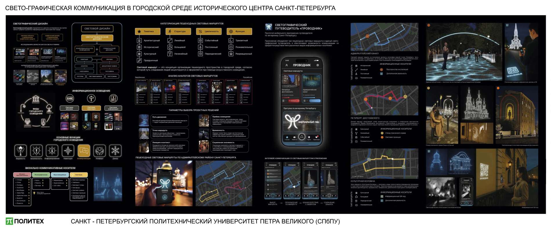 Целью работы является создание целостной системы взаимосвязанного применения световых и графических средств для формирования туристических маршрутов в городской среде на примере исторического центра Санкт-Петербурга.