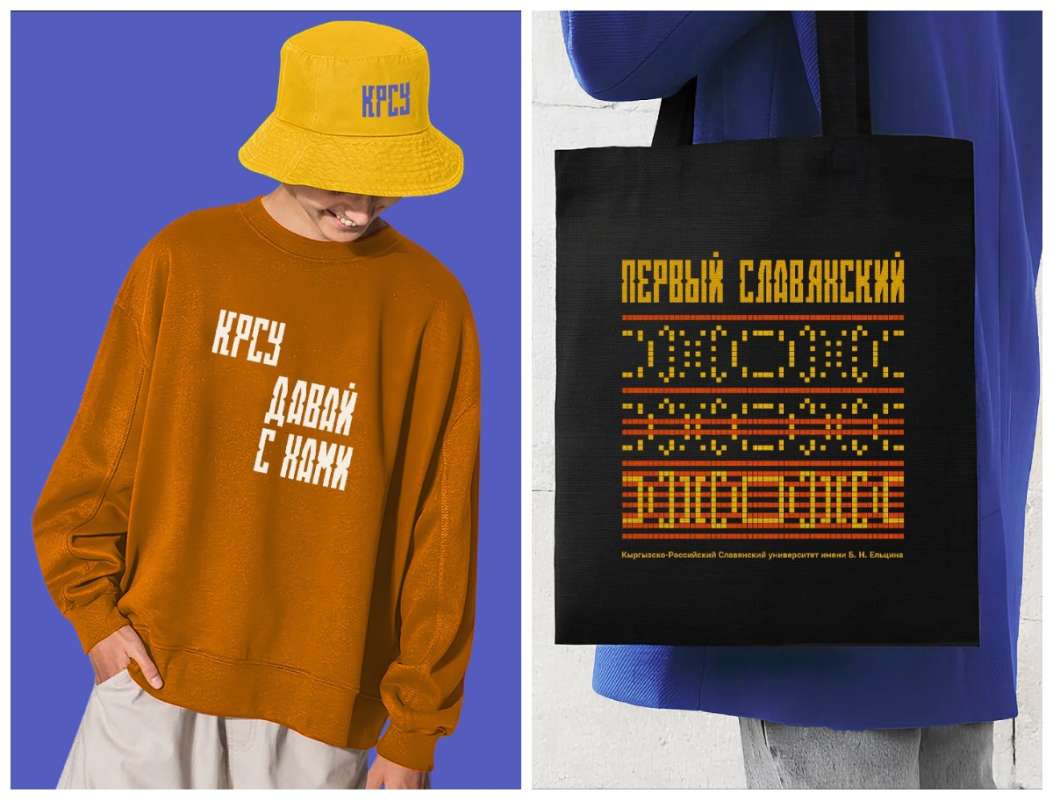 Внедрение нового шрифта в фирменный стиль университета предполагает повышение узнаваемости бренда и укрепление его лидирующих позиций на рынке образования. Шрифт создан с нуля и вдохновлен характерными элементами древнерусских шрифтов и восточных орнаментов (ромбы в орнаментах Киргизии). Набор является ярким, насыщенным, отображает единение двух культур. Шрифт используется в аббревиатуре университета, заголовках, пространстве среды, сувенирной продукции и рекламных материалах.