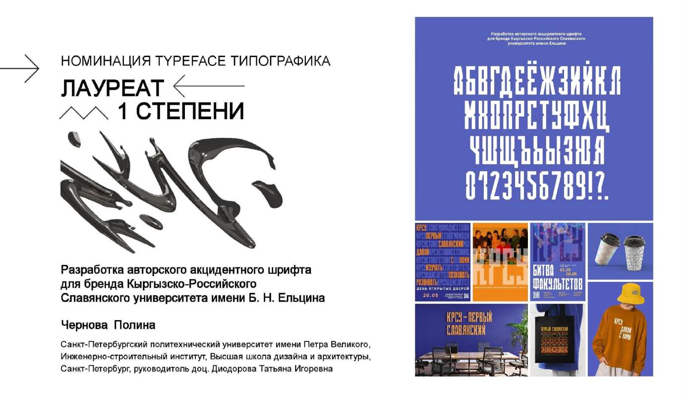 Полина разработала акцидентный шрифт в рамках проекта «Разработка фирменного стиля для бренда Кыргызско - Российского Славянского университета».