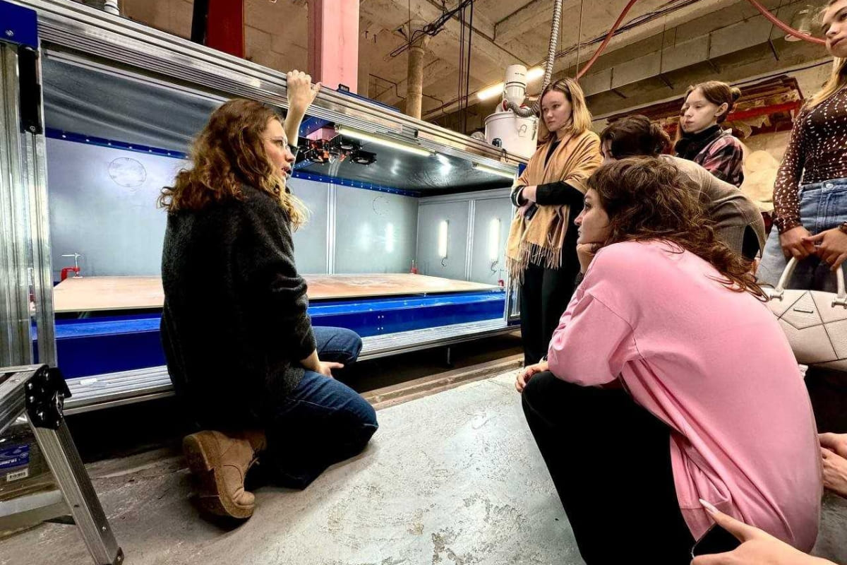 Студенты познакомились с современным оборудованием и материалами, узнали, как работает процесс экструзии, какие технологии применяются для создания мебели из вторичного пластика.