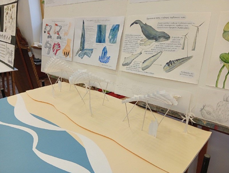 Выставка работ по дисциплине «Бионика» (руководитель — доцент ВШДиА ИСИ Ольга Александровна Вуль) включала задания, иллюстрирующие концепции известных архитектурных и бионических объектов, а также разработку паттернов, фаз движения животных и анимационные ролики от каждой группы.