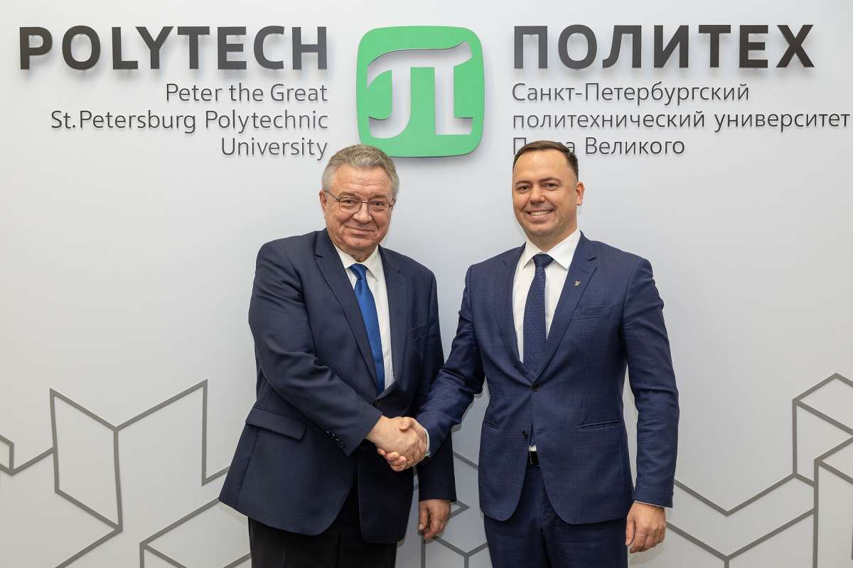 15 октября 2025 года в Санкт-Петербургском политехническом университете Петра Великого состоялась встреча ректора СПбПУ Андрея Рудского с руководителем базовой кафедры «Градостроительство» на базе ООО «НИИ ПГ» Инженерно-строительного института, директором Научно-исследовательского института перспективного градостроительства, к. г. н., академиком РААСН Павлом Спириным.