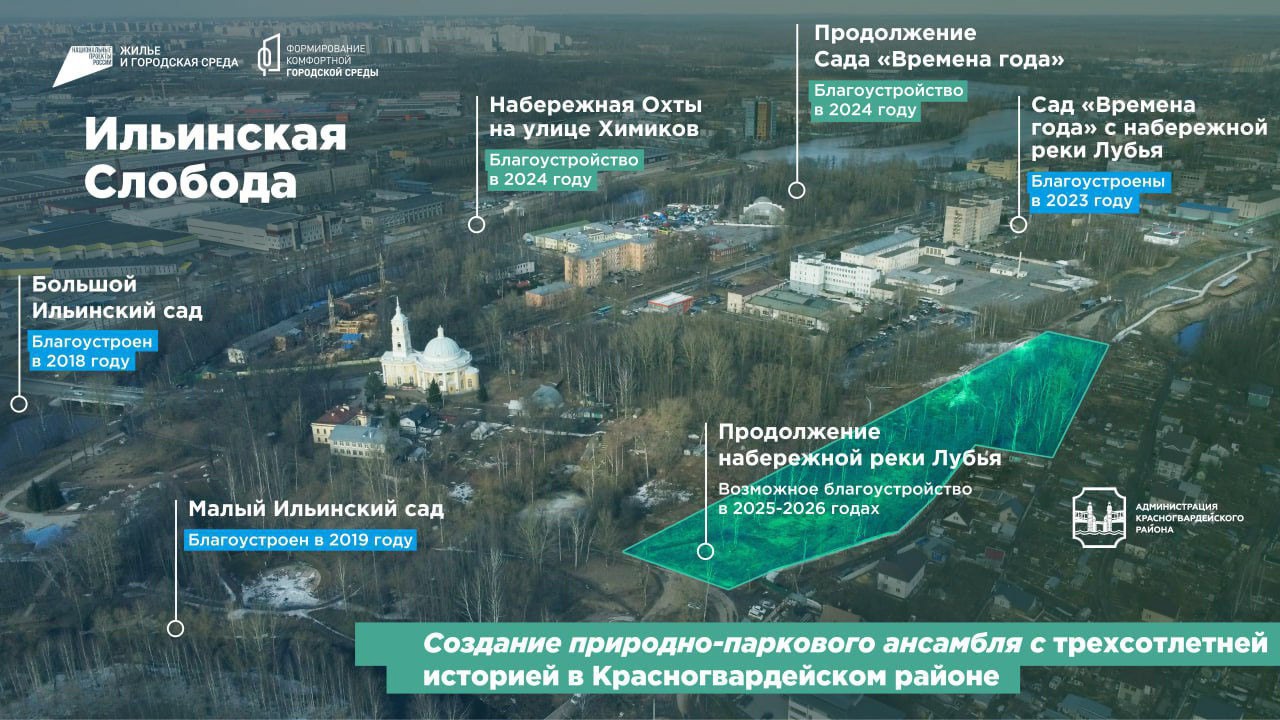 Во время экскурсии были представлены отреставрированные Александровские ворота, места, где был основан первый пороховой завод, сад «Времена года» с набережной реки Лубья, первый в Санкт-Петербурге железобетонный мост, Храм Пророка Илии на Пороховых, большой и малый Ильинские сады.