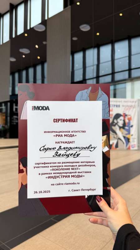Выпускница 2025 года Высшей школы дизайна и архитектуры Инженерно — строительного института Софья ЗАЙЦЕВА награждена дипломом I степени конкурса молодых дизайнеров «Поколение NEXT»
